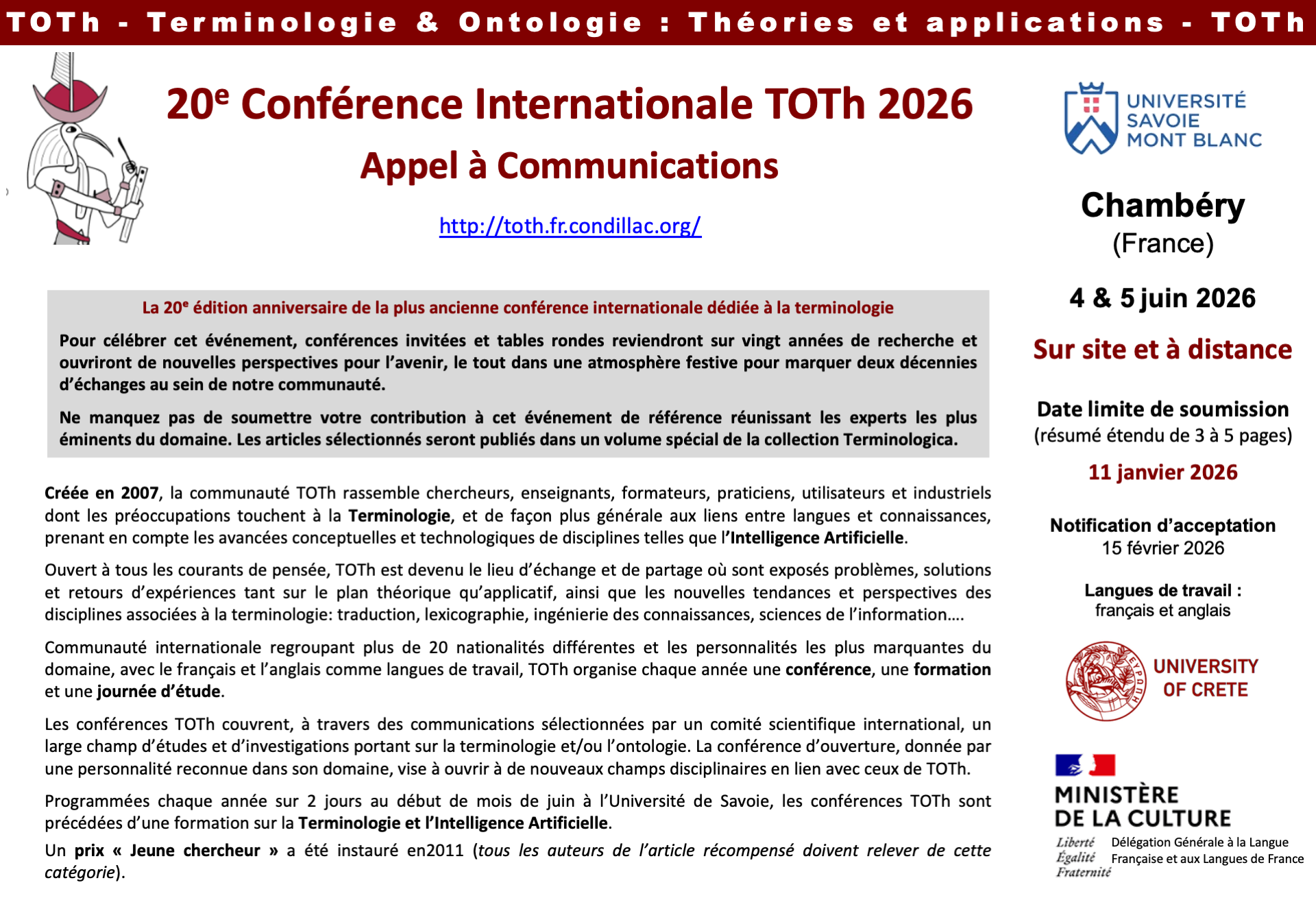 - Call for Papers: TOTh 2026 – Celebrating 20 Years of Terminology and Ontology Research