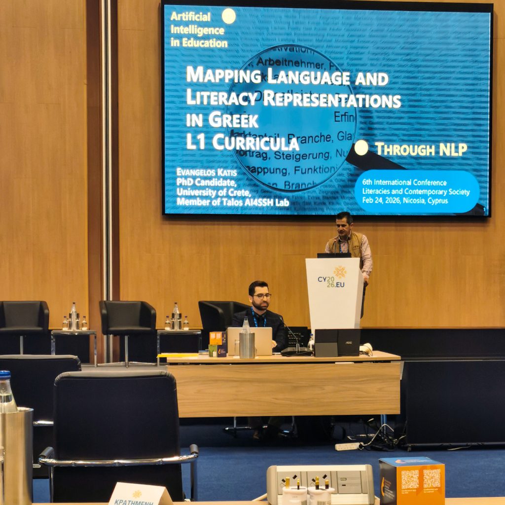 The TALOS Lab is proud to announce the successful presentation at the 6th International Conference “Literacies and Contemporary Society”, held on February 24-25, 2026, in Nicosia, Cyprus.