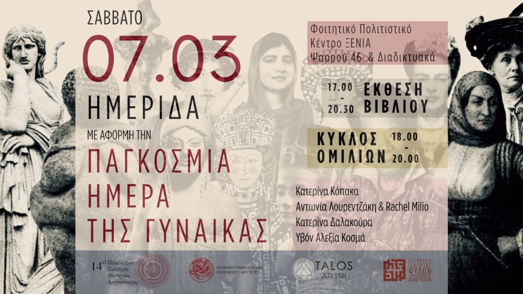 Antonia Lourentzaki (TALOS Research Assistant) and Rachel Milio (TALOS PhD candidate) represent the TALOS Lab today at the hybrid International Women’s Day event organised by the 14th Panhellenic Student Conference of Archaeology (7 March 2026, “Xenia” Student and Cultural Center, Rethymno & online). Their talk, “Prostitutes and Queens: Making Women of the Past visible in the Digital Age” (18:25–18:45), highlights how digital approaches can support the study and visibility of women in the past.