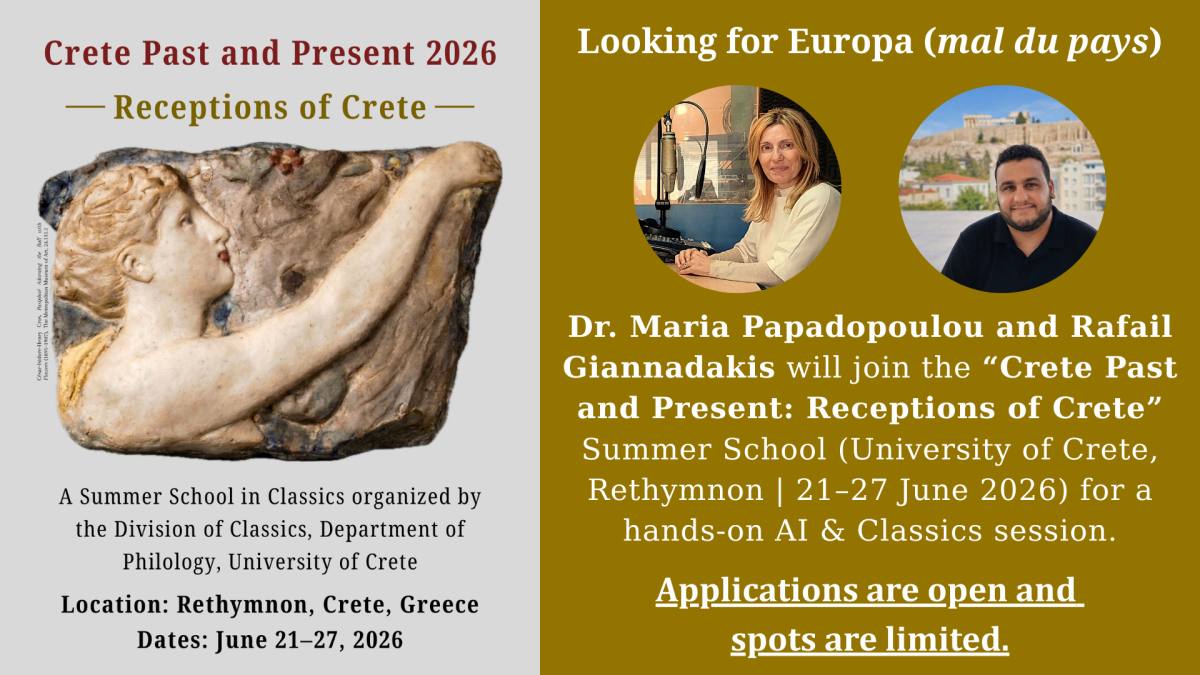 - Crete Past and Present: Receptions of Crete Summer School (University of Crete | June, 2026) — AI & Classics hands-on session
