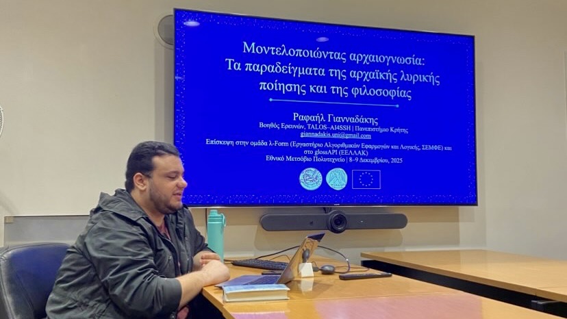 The TALOS Lab reports the successful research visit of Rafail Giannadakis (Research Assistant, TALOS AI4SSH, University of Crete) to Athens, where he was invited to the Logic and Formal Methods Research Group (λ-Form Group) at the National Technical University of Athens (NTUA) and to the GlossAPI team of the Free and Open Source Software Company (GFOSS – ΕΕΛΛΑΚ). The visit took place on 8 and 9 December 2025.