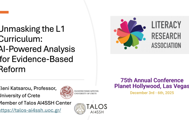 - TALOS at the 75th Annual Conference of the Literacy Research Association: Prof. Eleni Katsarou on AI-Powered Curriculum Analysis