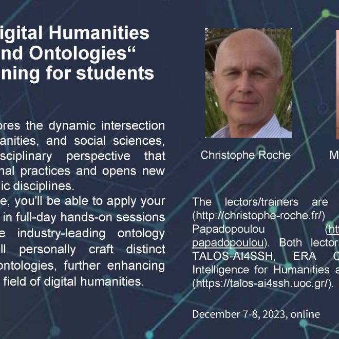 The title of the lecture is “Digital Humanities: Literature and Linguistics in the TALOS project‘‘.