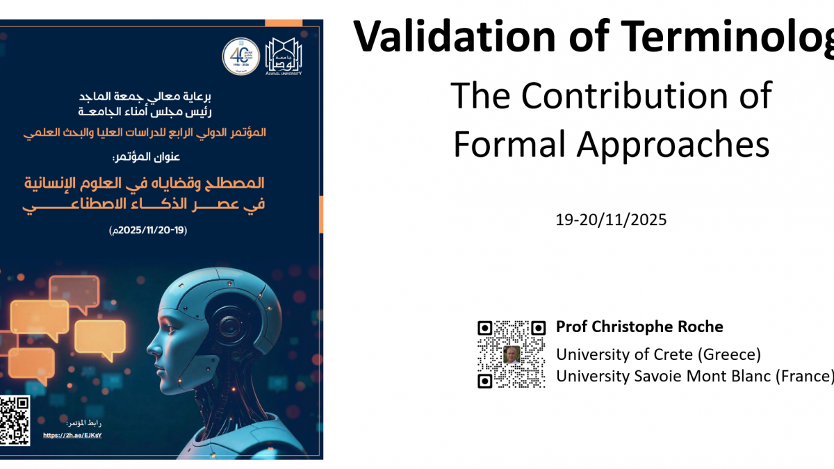 Prof. Roche’s talk, titled “Validation of Terminology: The Contribution of Formal Approaches”, will be given during the conference theme on terminology and the human sciences in the age of Artificial Intelligence. He will discuss how rigorous, ontology-based methods can be used to define, structure, and validate terminological resources so that they remain conceptually sound, interoperable, and reusable in AI-driven environments.