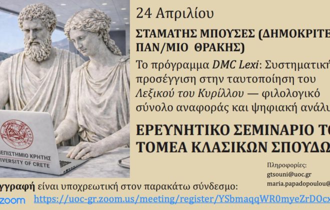 - Online Research Seminar Series by the Division of Classics: Stamatis Bouses on the ‘DMC Lexi’ Project and the Lexicon of Cyril