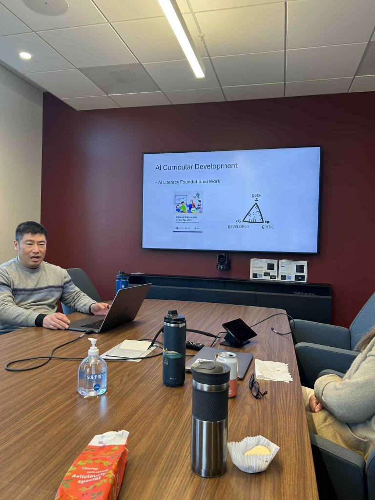 Over the two-day visit, participants engaged in discussions focused on Artificial Intelligence in Education. Prof. Katsarou and Dr. Sipitanos presented their research on AI in education, facilitating an exchange of experiences and perspectives with participants from the DISTAL Lab, as well as members of Stanford GSE, CSET, and the Stanford Accelerator for Learning (SAL). The discussions addressed current research methodologies and pedagogical applications related to AI and learning.